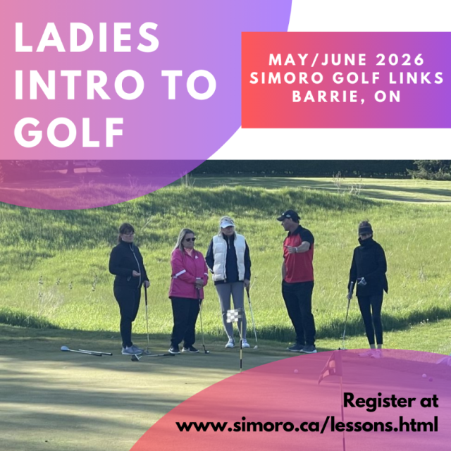 Cost is $280 +hst per player. This includes the 4 weeks of lessons plus 2 extra 9 holes with cart vouchers for you to use at Simoro anytime you wish (booking required). Golf clubs, golf balls and tees are included if required. The vouchers for the extra golf will be handed out on day 1.